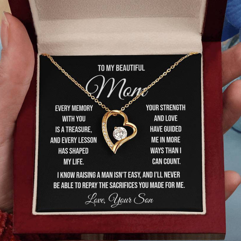 To My Beautiful Mom "Every memory with you is a treasure" Forever Love Necklace