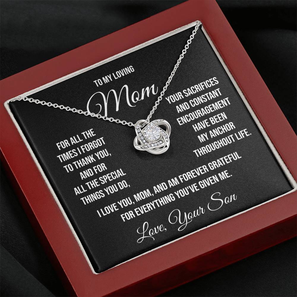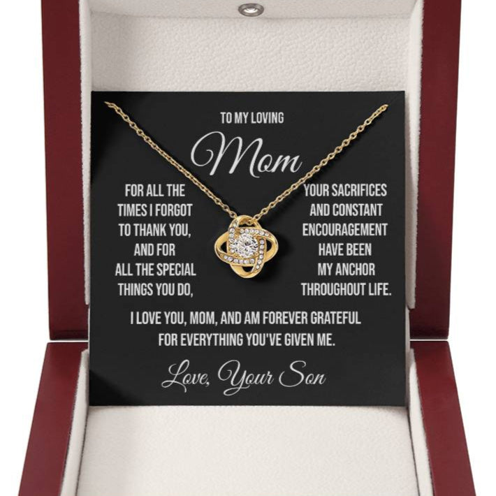 To My Loving Mom "For all the times I forgot to Thank You" Love Knot Necklace