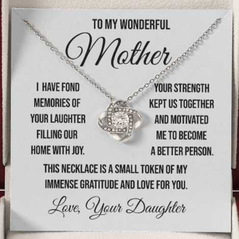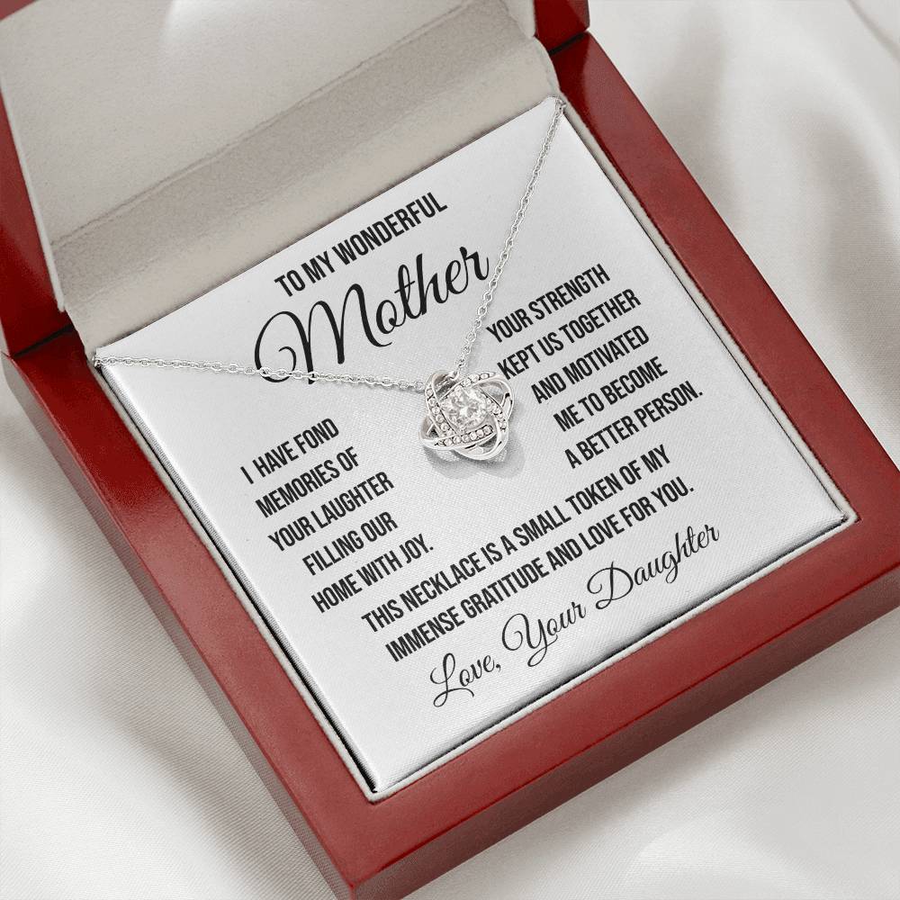 To My Wonderful Mother "I have Fond Memories" Love Knot Necklace